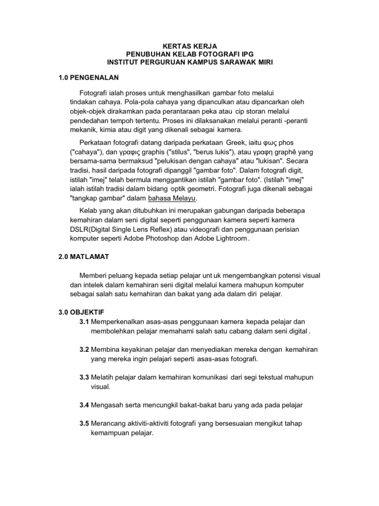 Kertas Kerja Penubuhan Kelab Persatuan Pdf